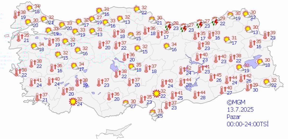 Bugün, 10 Temmuz Perşembe günü, ülke genelinde sıcaklıkların 24 ile 39 arasında değiştiği görülüyor.
