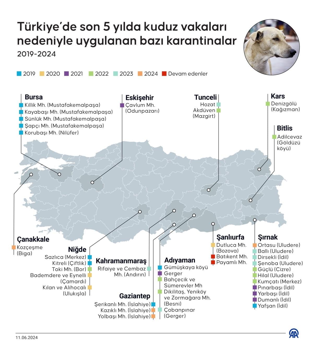 Kahramanmaraş, Şanlıurfa, Malatya, Adıyaman, Erzurum ve Bursa'nın da bulunduğu illerin belli bölgelerinde son 5 yılda karantina süreçleri uygulandı.