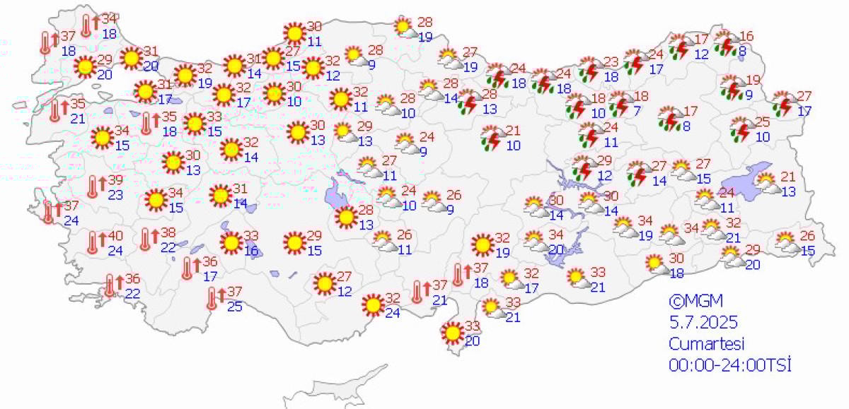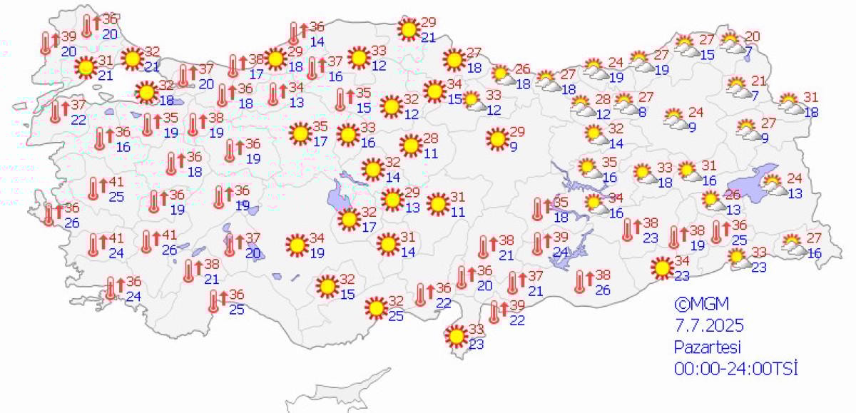 Aydın'da 44 dereceye kadar çıkması beklenen sıcaklıklar; Edirne ve Muğla'da 40, Antalya'da 40, İzmir'de 39, Ankara ve Konya'da 36, İstanbul'da ise 34 dereceye ulaşacak.