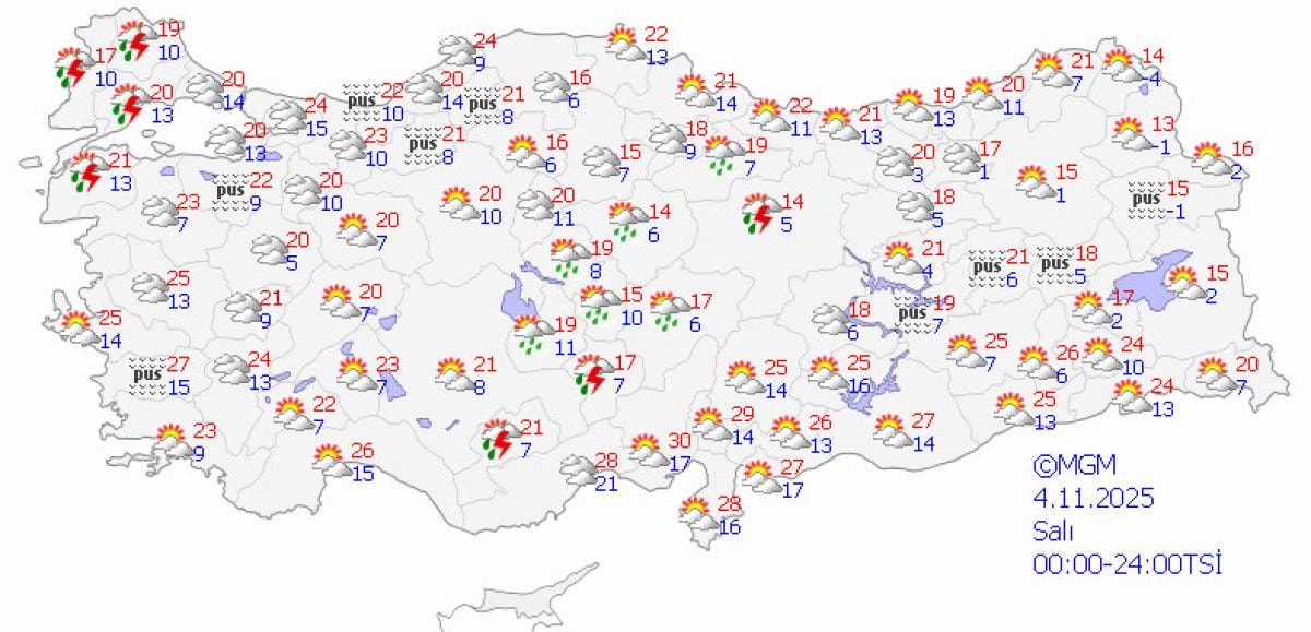 Meteoroloji Genel Müdürlüğü (MGM), Türkiye genelinde önümüzdeki 5 gün (4-8 Kasım) boyunca değişken hava koşullarının hakim olacağını duyurdu.