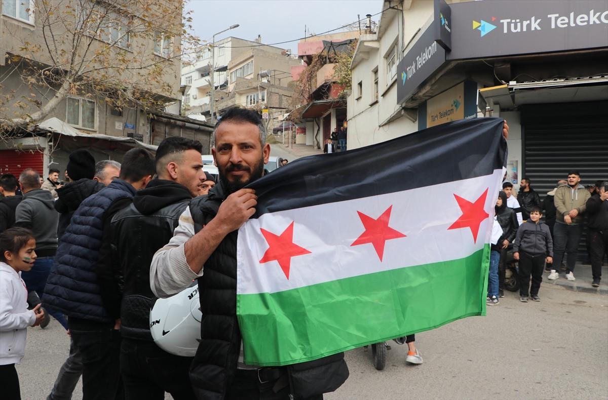 Adıyaman'daki Ulucami, Mara ve Musalla mahallelerinde yaşayan Suriyeliler de Türk ve Suriye bayrakları ile rejimin çöküşünü kutladı.