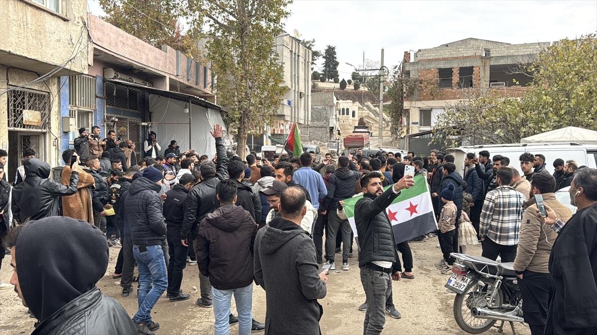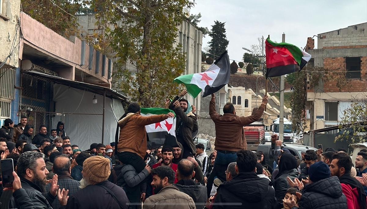 Kilis'te kent meydanında toplanan Suriyeliler, Türk ve Suriye bayrakları ile rejimin çöküşünü kutladı.