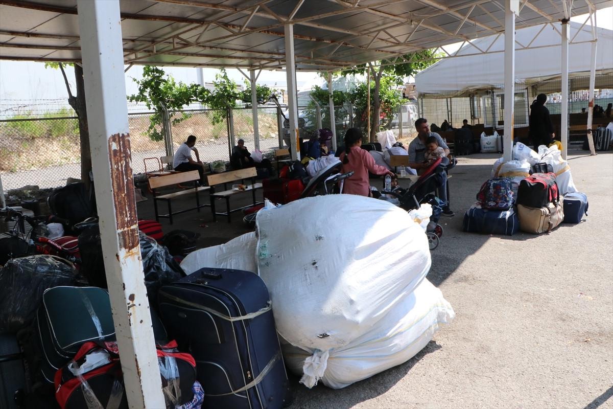 Kilis'teki Öncüpınar Gümrük Kapısı'na gelen Suriyeliler, Gönüllü Geri Gönderme Birimi'ndeki işlemlerinin ardından ülkelerine gidiyor.