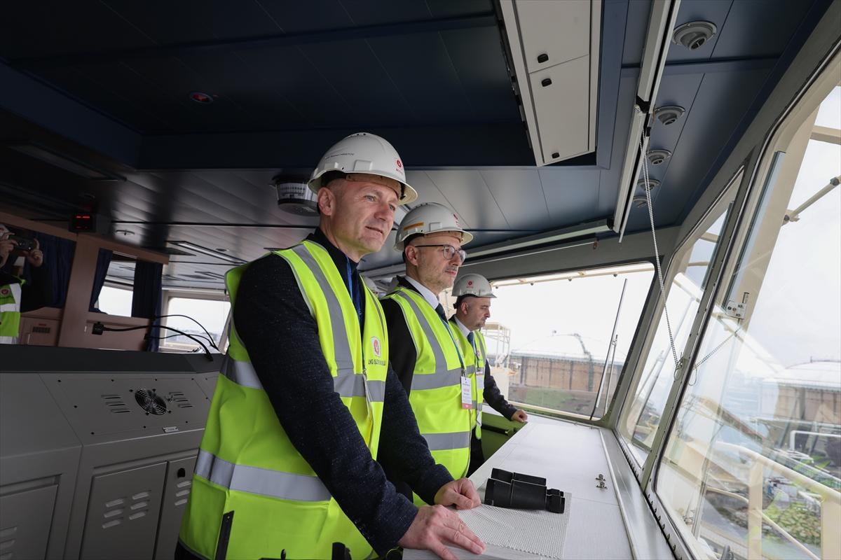 Törenin ardından LNG gemisine çıkan Hristov, BOTAŞ Genel Müdürü Özcan ve Bulgargaz Genel Müdürü Zlateva ile incelemelerde bulundu.