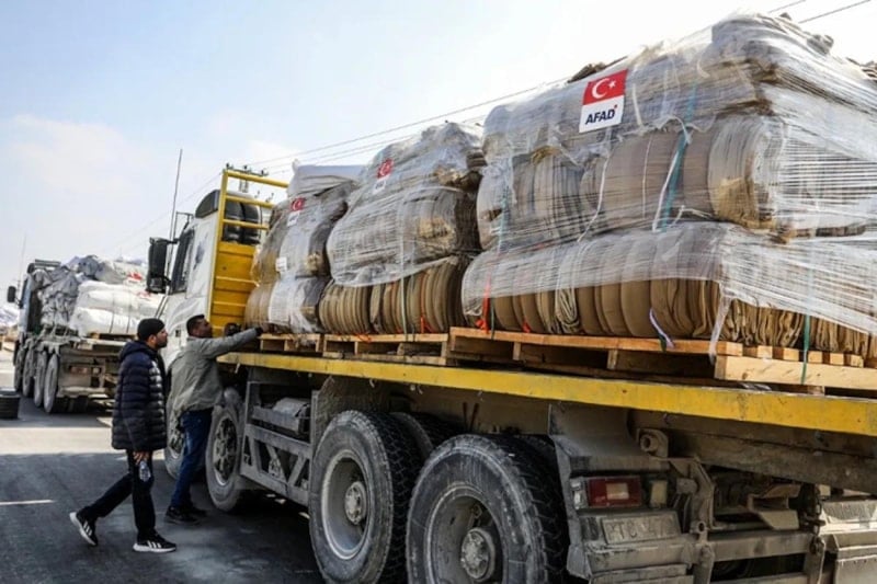 Gazze'ye 25 bin 729 ton gıda malzemesi, 3 bin 171 ton içme suyu, 351 barınma konteyneri, 113 bin 608 battaniye, 25 bin 180 çadır, 19 bin 798 uyku tulumu ve 151 bin 445 parça barınma malzemesi, 3 mobil mutfak sevk edildi, 469 bin 486 parça giyecek ve çocuklar için 1083 oyuncak seti ulaştırıldı.