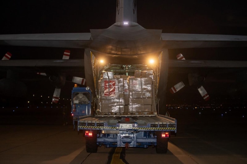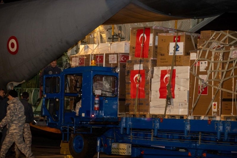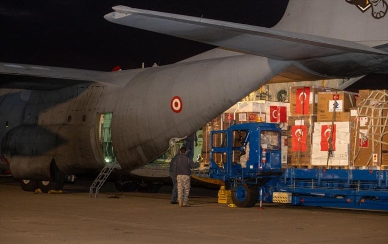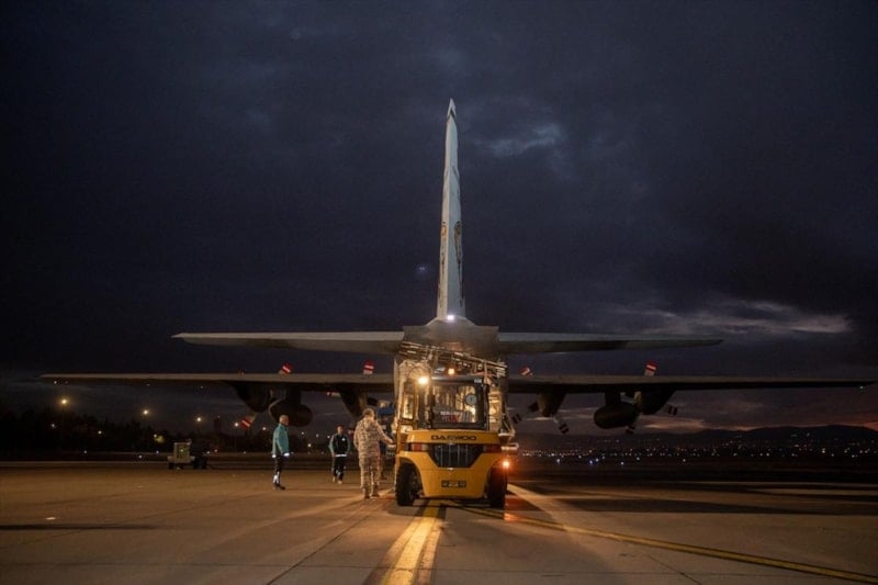 Kayseri Havalimanı'nda yaklaşık 8 ton ilaç ve tıbbi malzeme yüklenen Milli Savunma Bakanlığı'nın Hava Kuvvetleri Komutanlığına ait C-130 Hercules tipi uçak, hazırlıkların tamamlanmasının ardından uzman doktor ve hemşirelerin de arasında olduğu 9 sağlık çalışanıyla saat 08.00'de El-Ariş Havalimanı'na doğru havalandı.