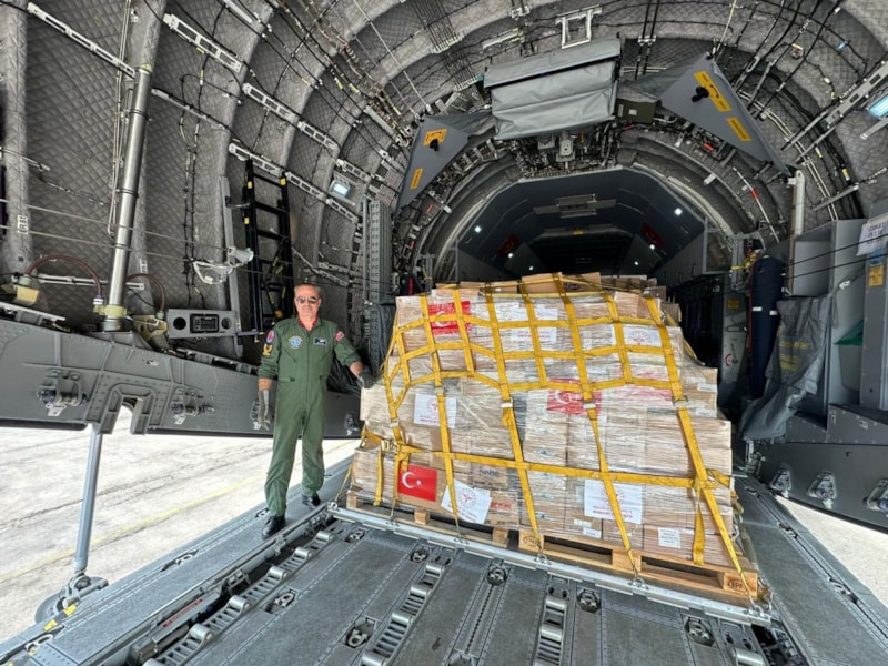 Bu kapsamda Milli Savunma Bakanlığı (MSB), Koca Yusuf adlı A400M tipi kargo uçağını gönderdi.