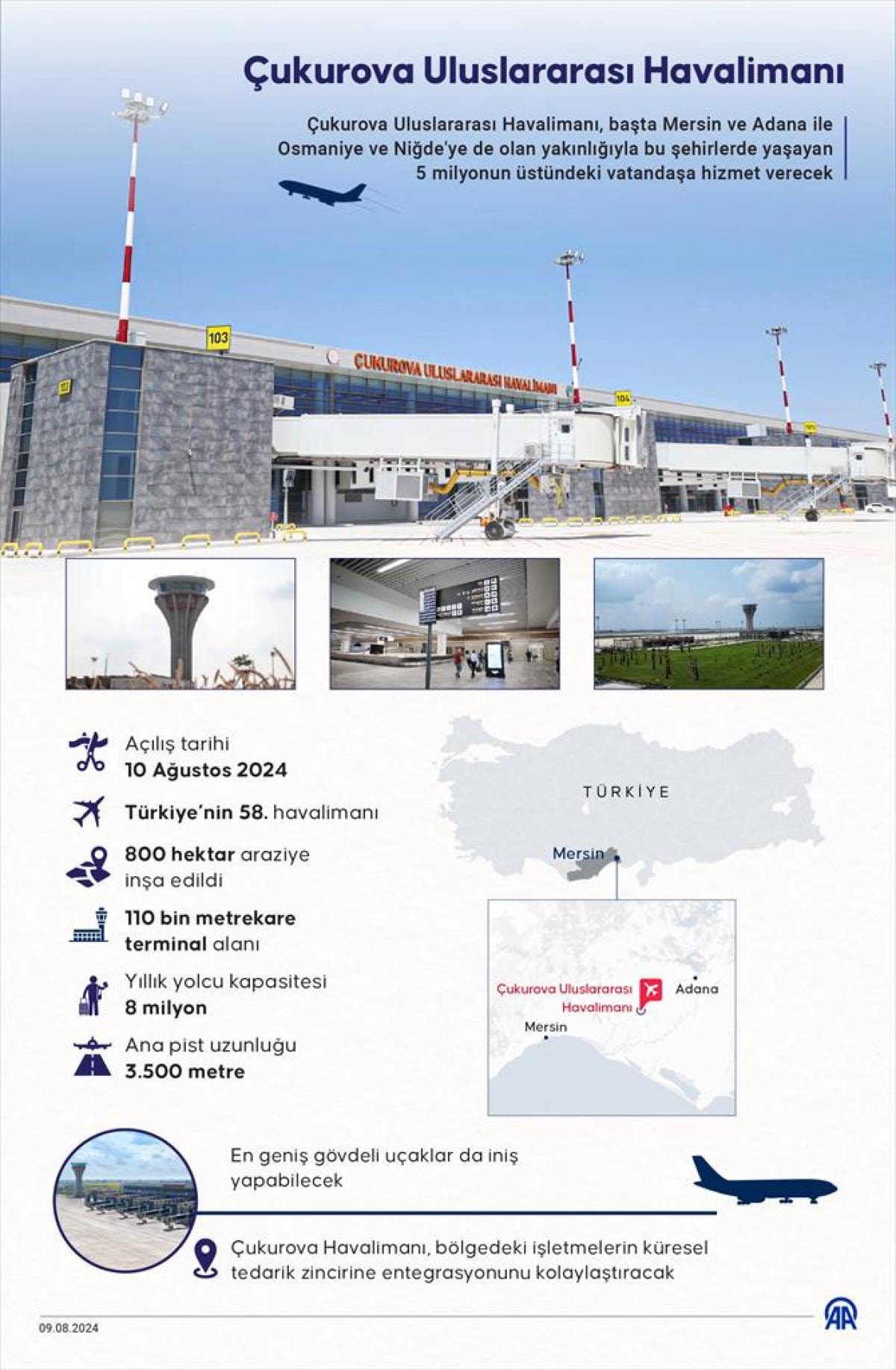 Türkiye'nin 58. havalimanı olan ve Türkiye'nin en önemli havacılık yatırımlarından biri olarak değerlendirilen Çukurova Havalimanı, açılışının ardından hizmete alınıyor.