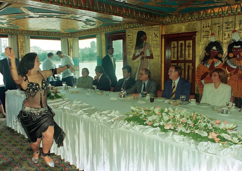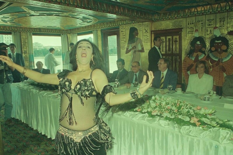 Burada Çiller ve Türk heyeti için Mısırlı bir dansöz oynatıldı. İki dönem arasındaki ziyaretteki fark oldukça dikkat çekiyor.