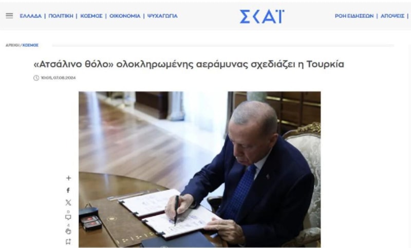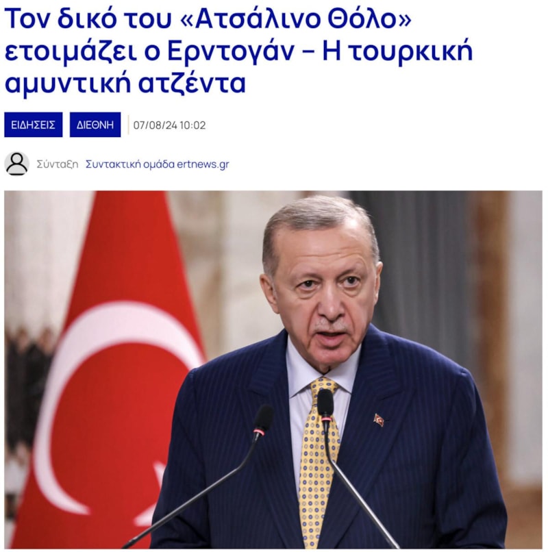 Yunanistan'da yayın yapan ErtNews haber sitesinde, Türkiye'nin yeni dönemde savunma sanayiine önemli yatırımlar yapılacağı aktarılan haberde, "Erdoğan kendi 'Çelik Kubbesini' hazırlıyor." ifadeleri kullanıldı.