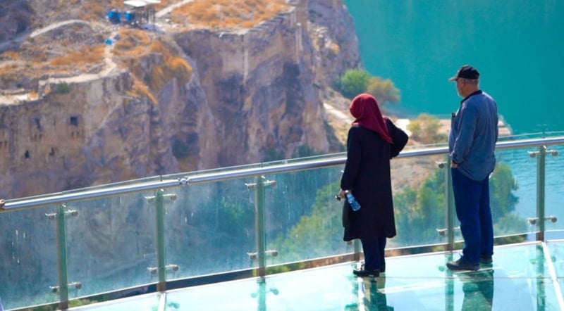 “Türkiye’nin en büyük cam terası. Bu cam terasın yapılma amacı kaleyi daha manzaralı bir açıdan görmek. Terasımızda günlük bin kişi civarında ziyaretçi ağırlıyoruz. Haftada 6 bin ila 7 bin kişi arasında ziyaretçiye ulaşmış durumdayız. Bu ziyaretçi kapasitesi daha da artacak.”