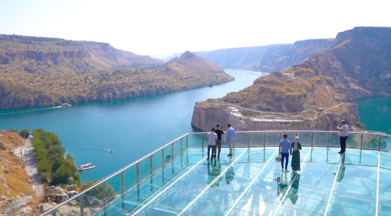 270 metrekarelik bir alana sahip, 150 metre yüksekliğindeki Rumkale Cam Terası’nı ziyaret edenler, önce manzaranın daha sonra tekne turuyla Fırat’ın keyfini çıkarıyor.