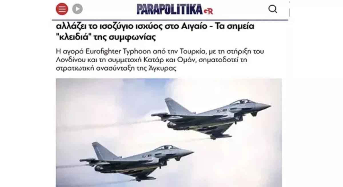 Parapolitika, "Türkiye’nin Eurofighter alımı Ege’deki güç dengelerini nasıl değiştirecek" başlıklı haberinde şu ifadelere yer verdi: