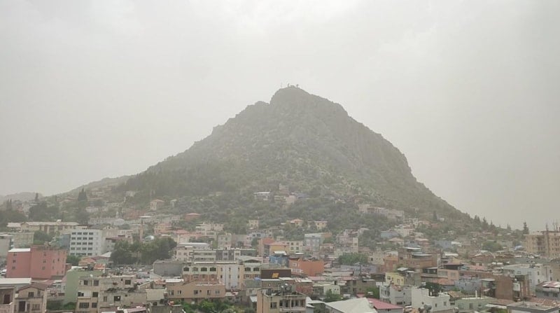 Antakya'nın yüksek noktalarından olan Habib-i Neccar Dağı'ndan toz bulutunun kenti etkisi altına aldığı görüldü.