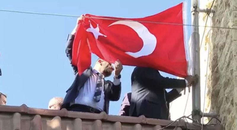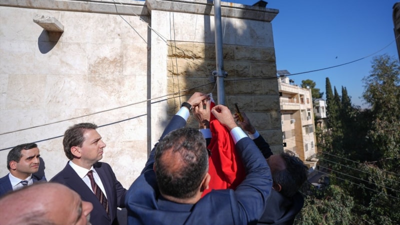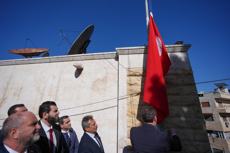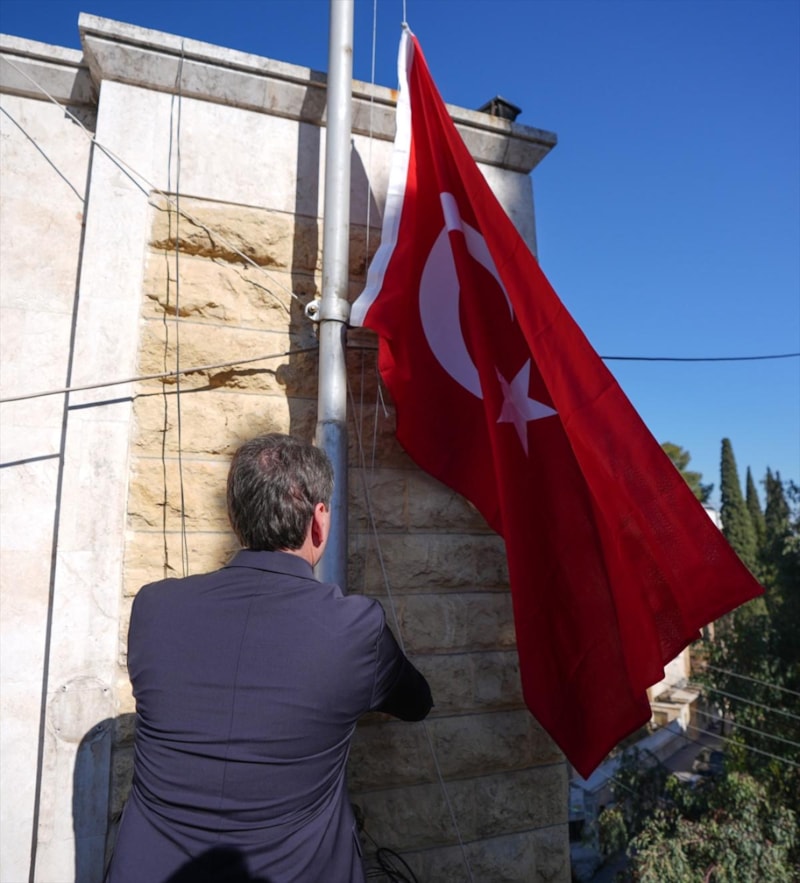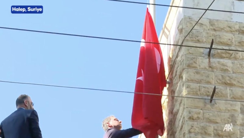 Türkiye'nin Halep Başkonsolosluğu'nda 13 yıl sonra Türk bayrağı göndere çekildi.