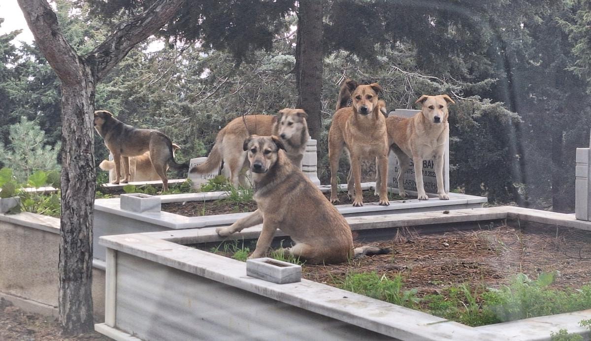 Mezarlıklarda sürüler halinde gezen köpekler, vatandaşların ölülerine dahi rahat bir şekilde dua etmesinin önüne geçiyor.