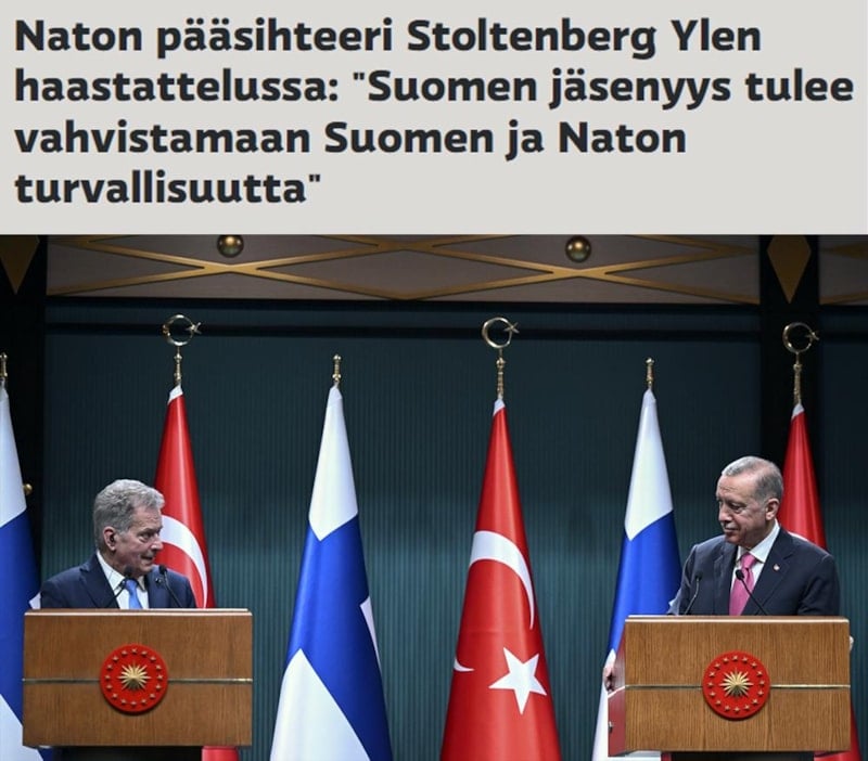 Yle'de yer alan haberde, Erdoğan'ın, Finlandiya'nın NATO üyeliğine dair parlamentoda onay sürecinin başlatılacağını söylediği, İsveç ile müzakerelerin süreceği aktarıldı.