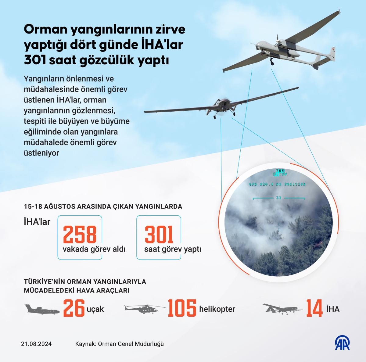 İHA'lar, son olarak orman yangınlarının yoğun yaşandığı 15–18 Ağustos günlerinde 258 yangında 301 saat uçuş gerçekleştirdi.