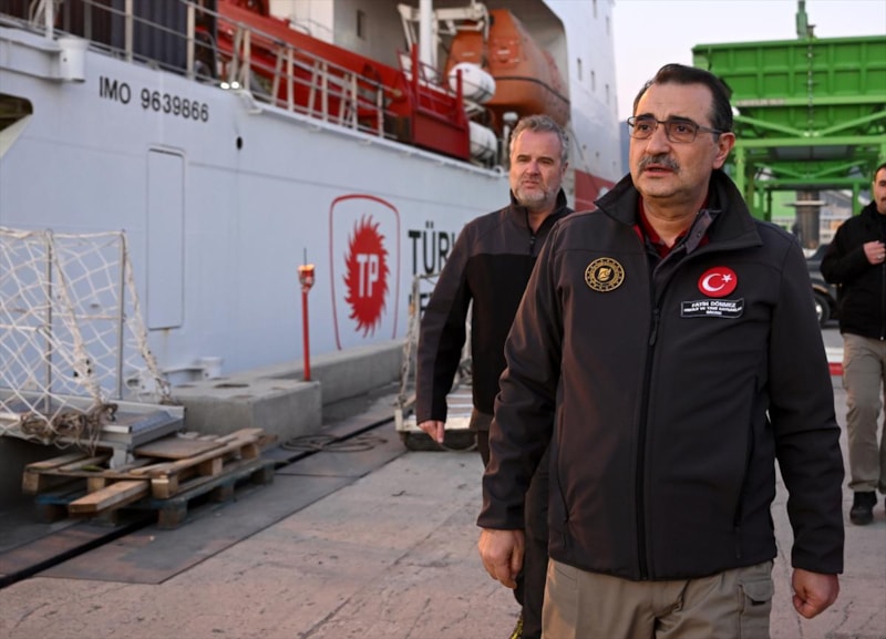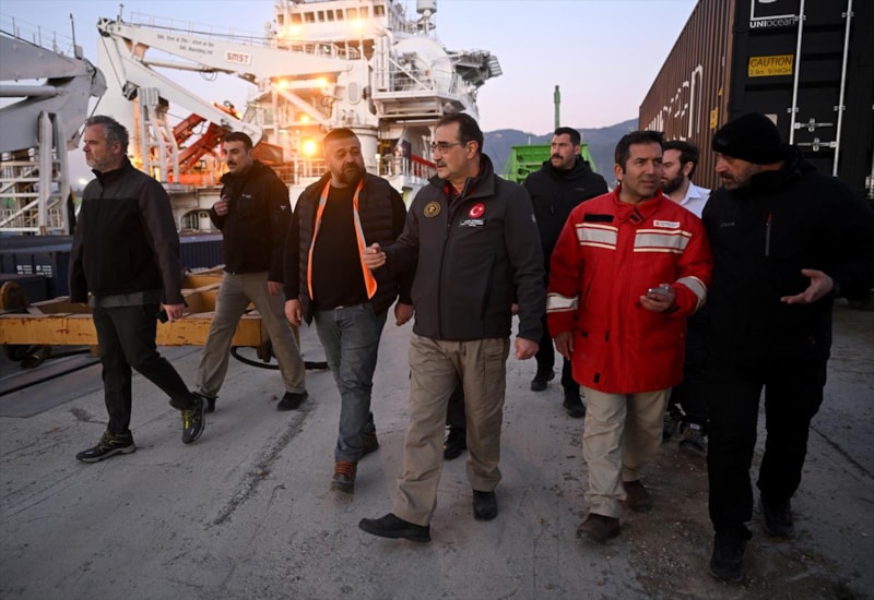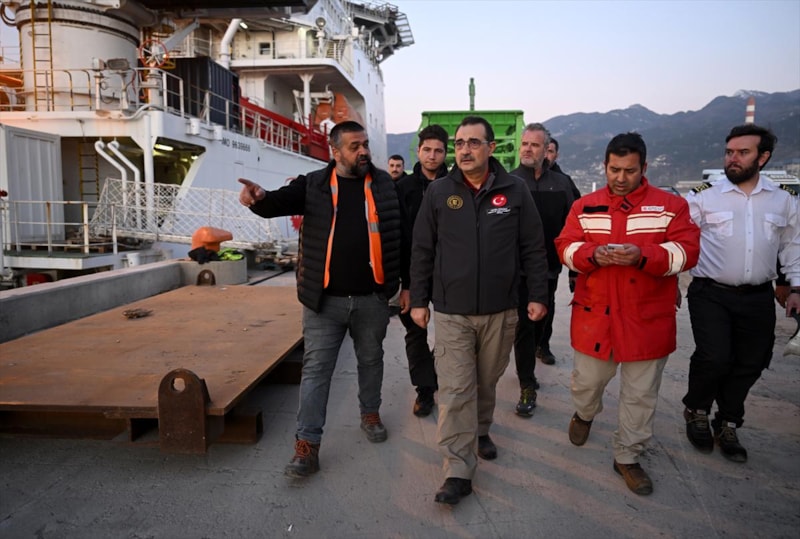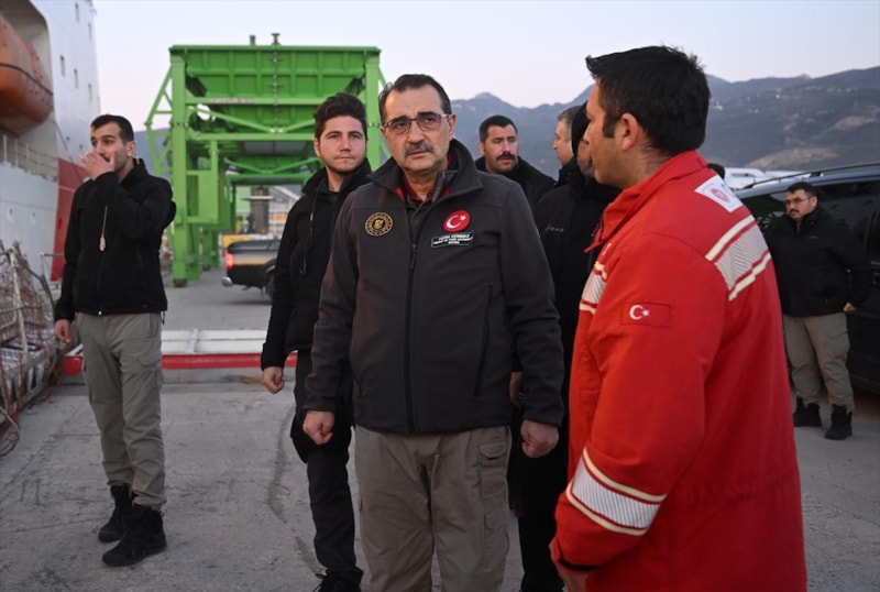 Gemiyi karşılayan Enerji ve Tabii Kaynaklar Bakanı Fatih Dönmez, kaptan ve mürettebattan yardımların ulaştırılmasına ilişkin bilgi aldı.