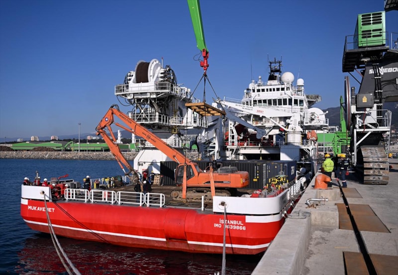 Karadeniz'de keşfedilen 710 milyar metreküplük doğalgazı karaya çıkarmak için Türkiye'nin enerji filosuna dahil edilen su altı inşaat gemisi "Mukavemet", depremzedeler için toplanan yardımları afet bölgesine ulaştırıyor.