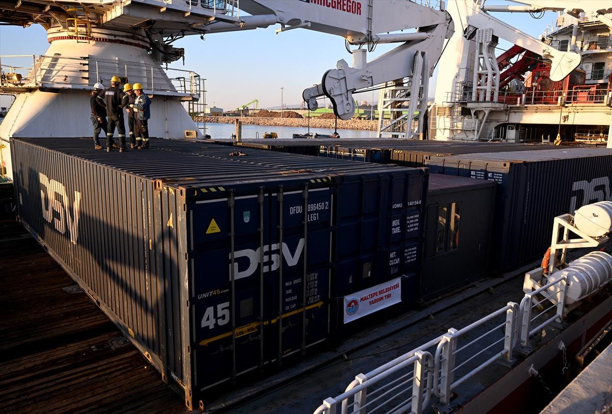 Dönmez, gemiyle getirilen iş makinelerinin ise yıkılan binalardaki arama kurtarma ve enkaz kaldırma çalışmalarında kullanılacağını ifade etti.
