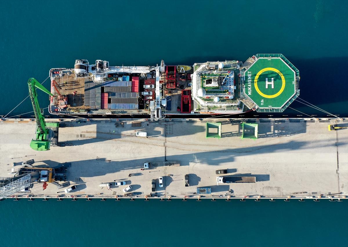 Mukavemet, geçtiğimiz aylarda hizmete aldığımız, Karadeniz'deki doğalgaz çalışmalarında su altı yapılarımızı inşa eden gemilerimizden biri. Afetten dolayı ekipman ve personelimizin büyük bir kısmını deprem bölgesine gönderdik. Bu kapsamda Türkiye Petrolleri Anonim Ortaklığı ve onunla iş birliği içinde olan bazı kuruluşlarımız, bu bölgede yer alan depremzedelerin başta temel gıda ihtiyaçları olmak üzere barınma, çadır, tıbbi malzeme gibi ihtiyaçlarını bu gemiye yükleyerek 16 tırlık bir yük almış durumda. İskenderun Körfezi'ne indirdiler. İnşallah kısa süre içinde bu malzemeleri depremzedelerimize ulaştıracağız.
