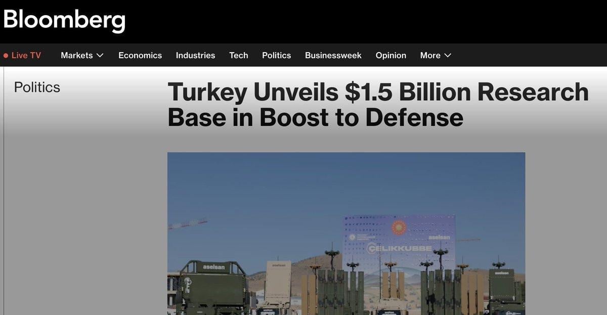 Bloomberg, konuya ilişkin hazırladığı haberi, "Türkiye’den 1,5 milyar dolarlık dev savunma üssü hamlesi" başlığıyla duyurdu.