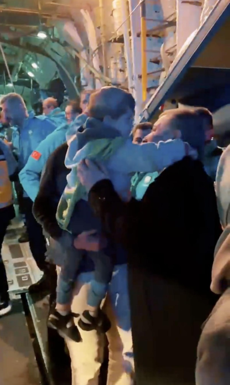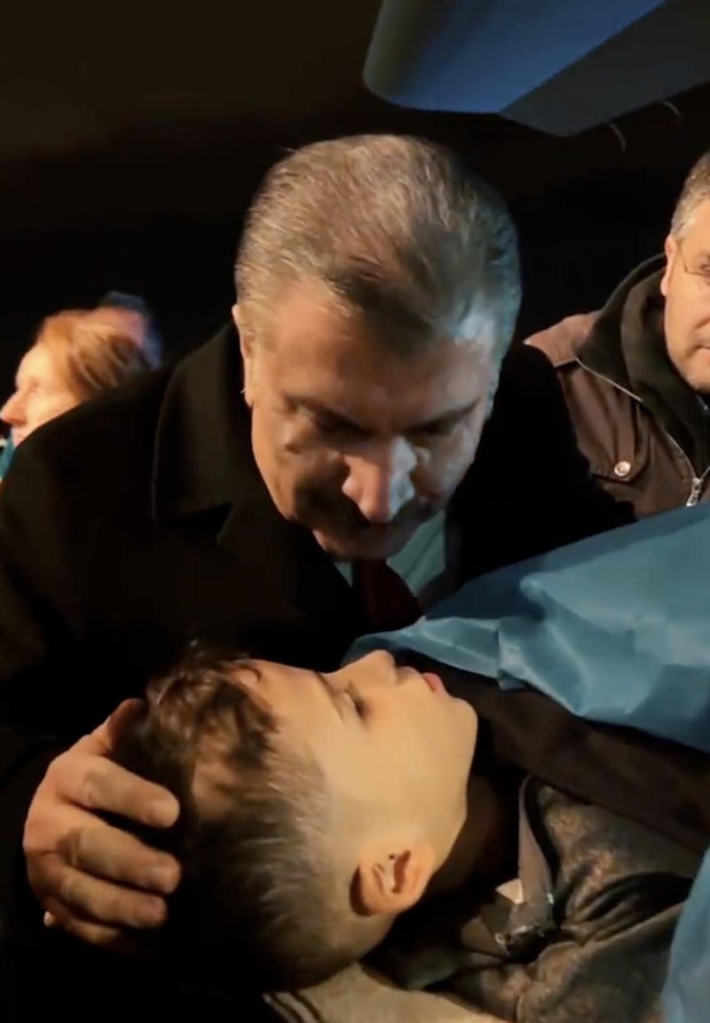 Gazze'den tahliye edilen yaralı ve refakatçileri Ankara'da havaalanında karşılayan Fahrettin Koca'nın boynuna sarılan Gazzeli bir çocukla duygusal anları kameralara yansıdı.