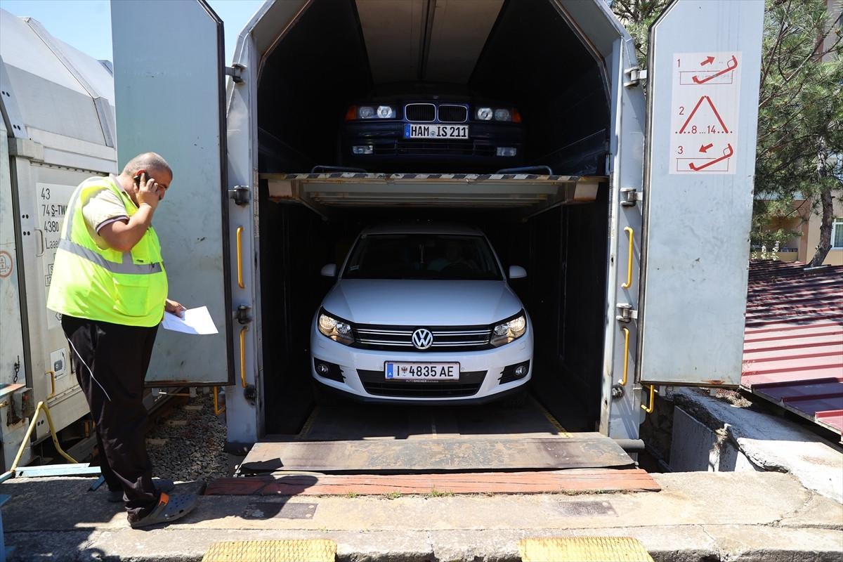 Slovenya, Hırvatistan, Sırbistan ve Bulgaristan sınır kapılarında beklemeksizin 1400 kilometre yol kat eden gurbetçiler, Edirne Garı'nda görevliler yardımıyla araçlarını trenden indirip pasaport ve gümrük işlemleri sonrası yurda giriş yapıyor.