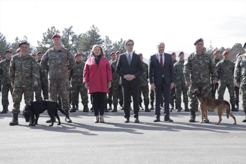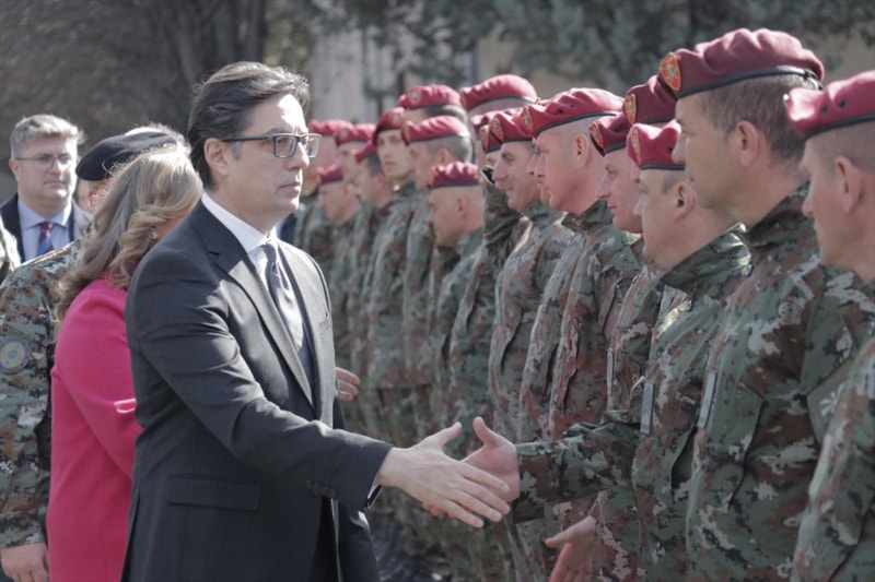 Pendarovski, Kuzey Makedonya ordusu mensuplarına "Bu zor günlerde bizleri gerçekten gururlandırdınız." şeklinde seslendi.