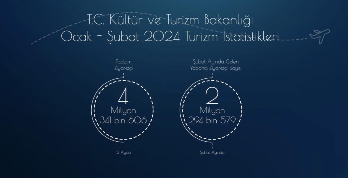 Bakanlık, 2024 yılının ilk iki ayında gelen yabancı ziyaretçi sayısının bir önceki yılın aynı dönemine göre yüzde 12 arttığını belirtti.