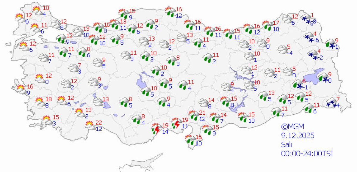 Meteoroloji Genel Müdürlüğü, son hava tahmin raporunu yayımladı.