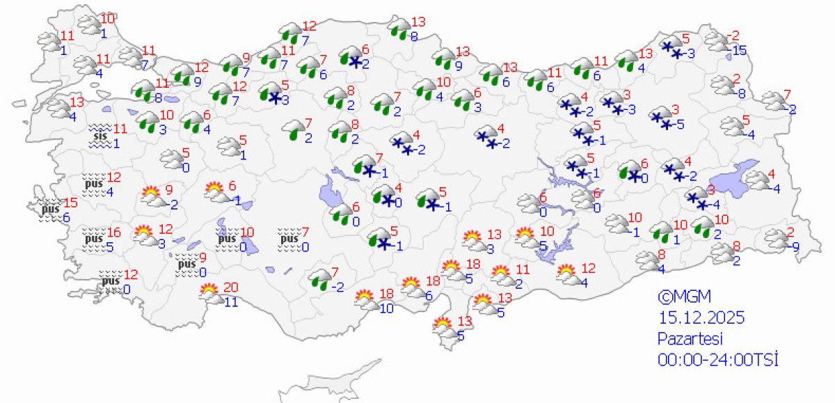- Türkiye'yi soğuk ve yağışlı bir hafta bekliyor, özellikle İç Anadolu, Karadeniz ve Doğu Anadolu bölgelerinde yoğun pus ve sis görülecek.