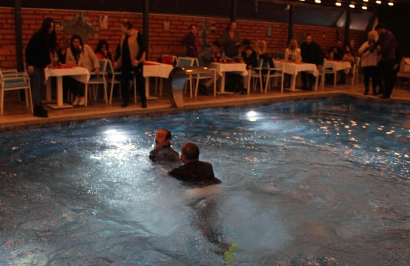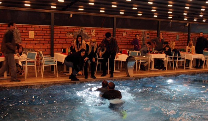 Geceye katılanların havuzdan çıkardığı Keser, kulise gidip üzerini değiştirdikten sonra tekrar sahneye geldi.