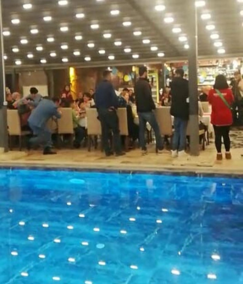 Gecede bir süre afetzede çocuklarla ilgilendikten sonra sahneye doğru yürüyen Keser, ayağının zemine takılması sonucu dengesini kaybedip, sırt üstü otelin havuza düştü.
