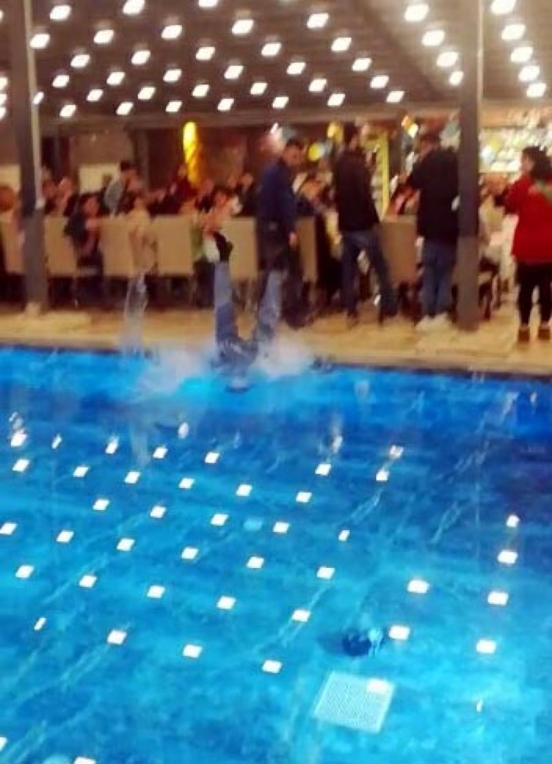Dengesini kaybedip havuza düştü