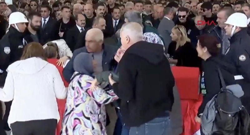 Cenaze töreni sırasında şehidin yakınlarından birkaç kadın, şehide son kez veda etmek için yaklaştıkları tabuta dokununca bayıldı.