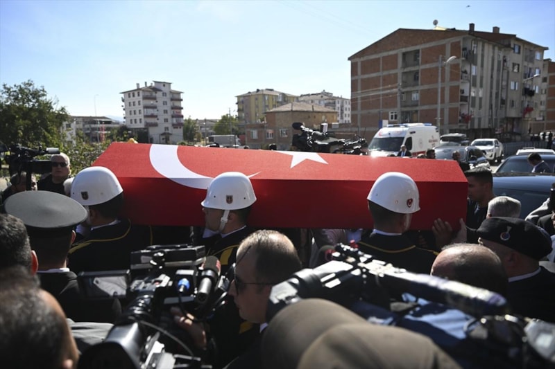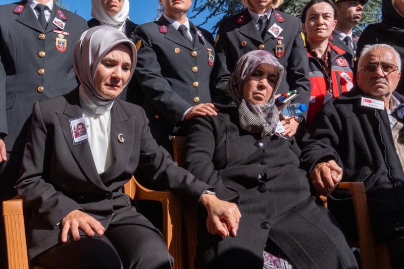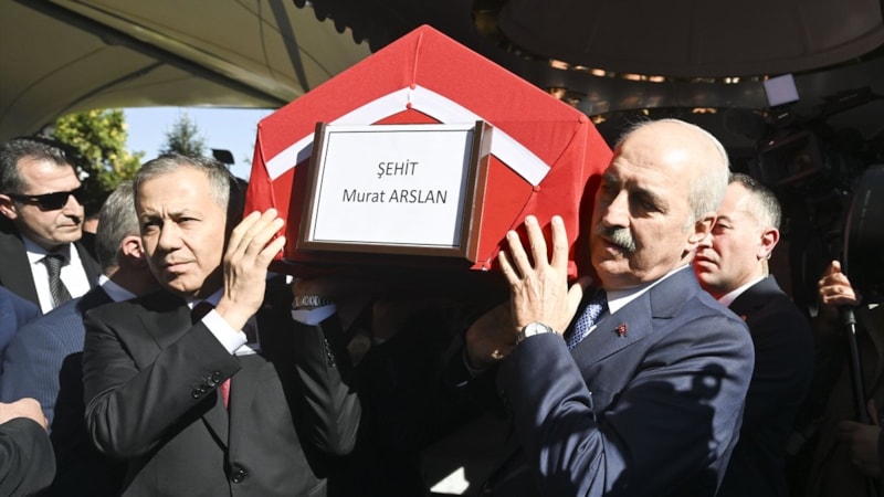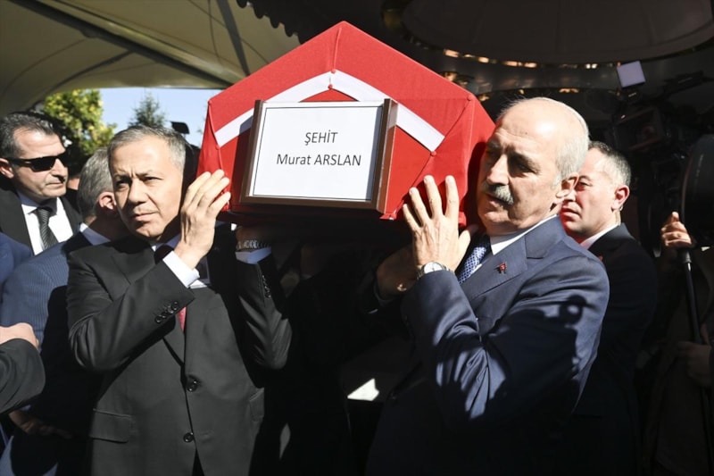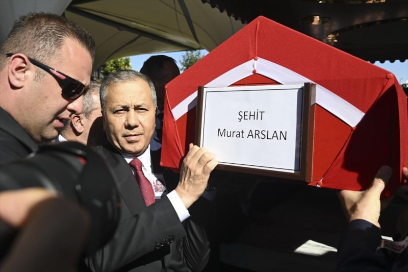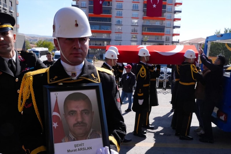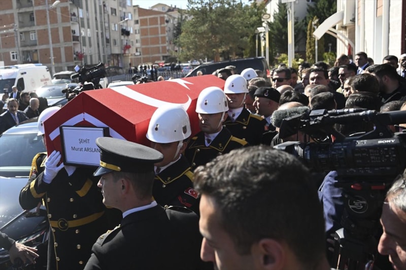Ankara'da TUSAŞ'a yönelik terör saldırısında şehit edilen ticari taksinin şoförü Murat Arslan'ın naaşı, Kahramankazan Devlet Hastanesi'nden askeri törenle alınmasının ardından gözyaşları eşliğinde defnedildi.