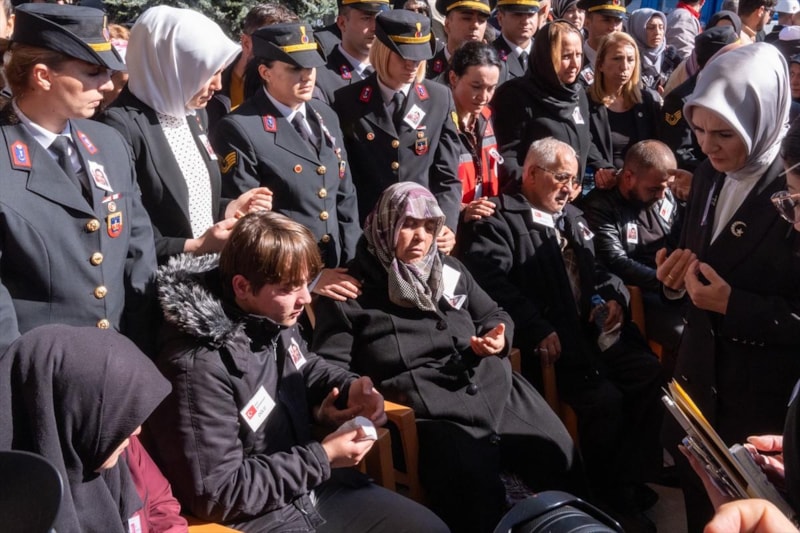 Cenaze namazı kılınan camide şehit Arslan'ın eşi, babası, annesi ve yakınları taziyeleri kabul etti.