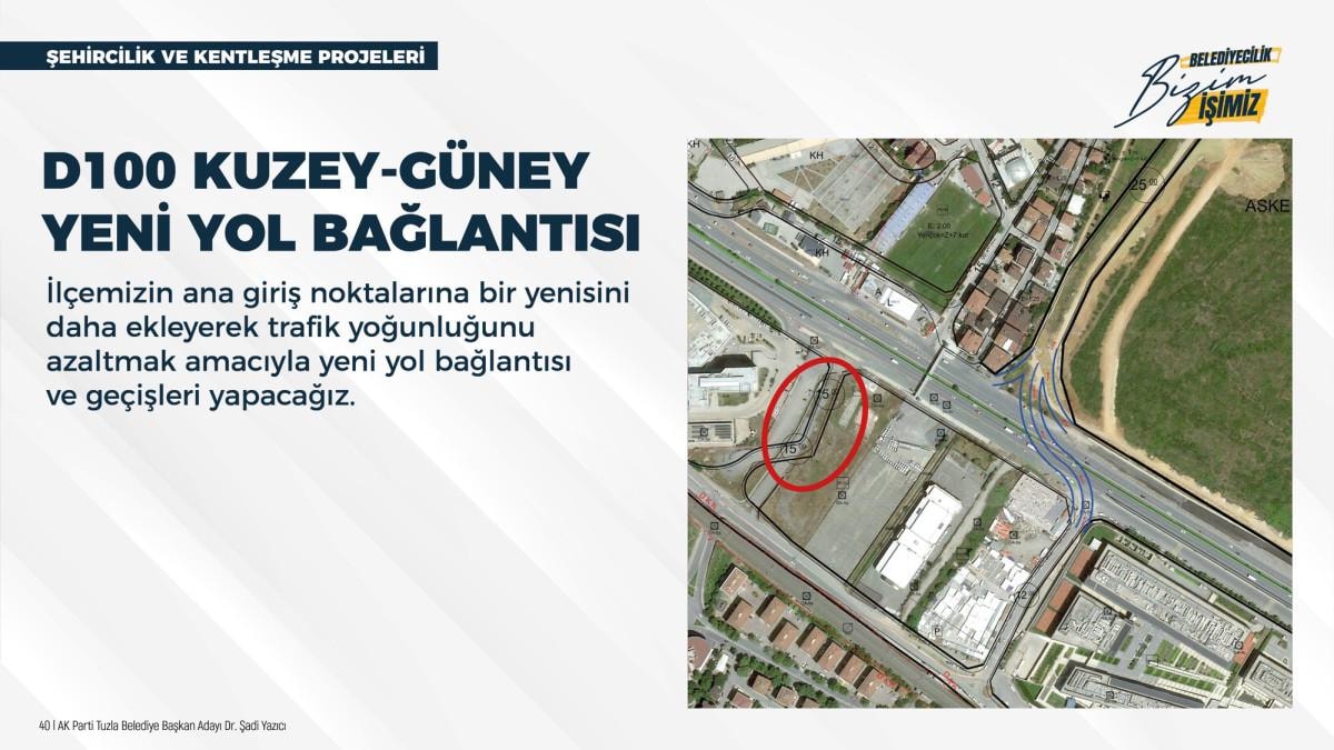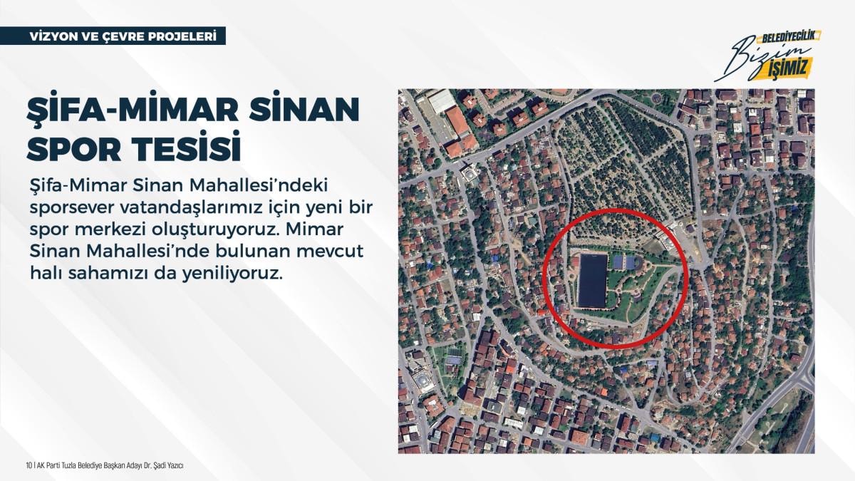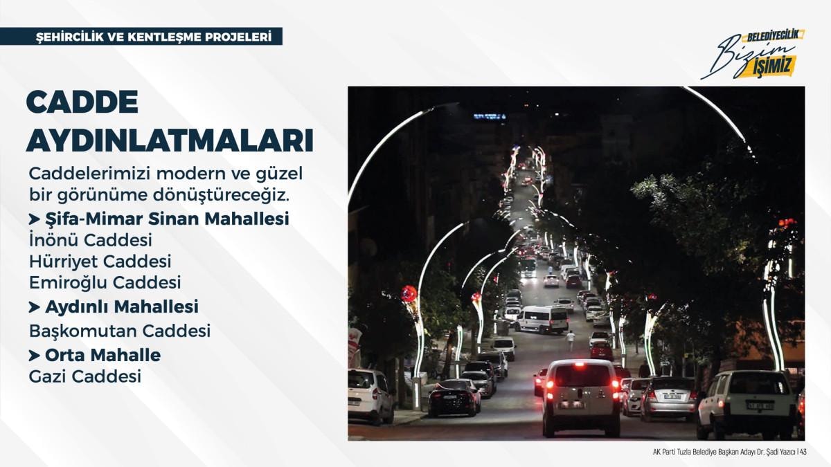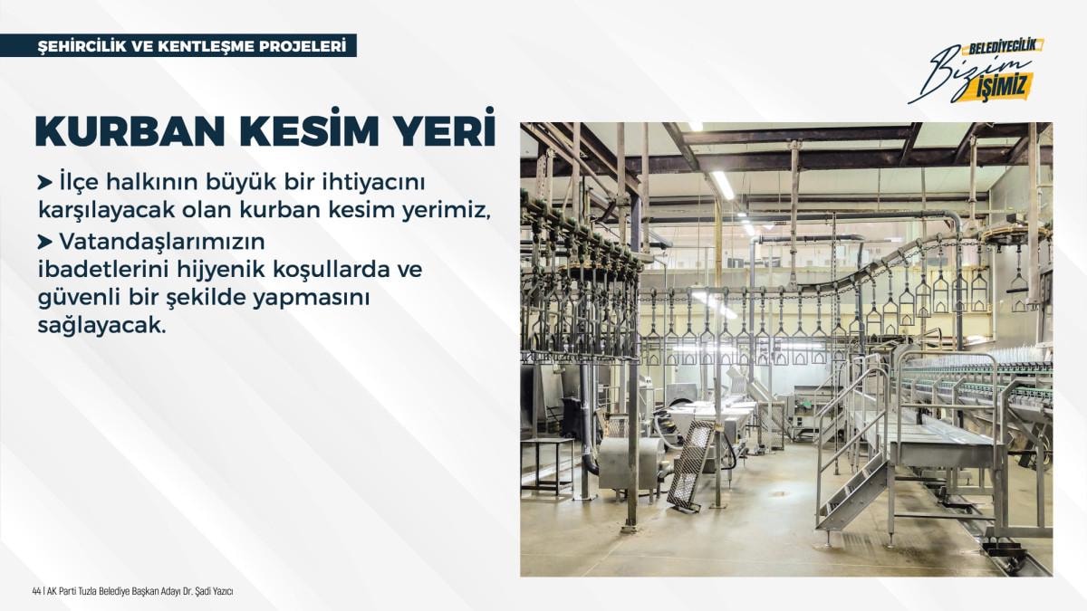 Başkan Şadi Yazıcı, “Daha önce projeleri tamamlanmış, yatırımına başlanmış işleri ısrarla takip ettik. Tavşantepe - Tuzla Metrosu, Sebze ve Meyve Hali, Hacet Deresi, Hünkar Çayırı Bağlantı Yolu, Aydıntepe Sabiha Gökçen Bağlantı Yolu, Kamil Abdüş Gölü Çevre Düzenlemesi, Benim Köyüm Benim Çiftliğim Projesi, Arıtma Tesisi Koku Giderme Ünitesi. İstediğimiz sadece bunların yapılmasıydı. Bunların İstanbul Büyükşehir Belediyesi tarafından yapılması Tuzla’nın hakkıydı.