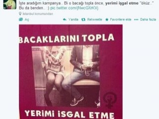Söz konusu erkeklerin, oturdukları koltuklarda bacaklarını ölümüne sağa sola açarak görüntü kirliliği oluşturduğu bir gerçek. Ayrıca bu erkekler, vücutlarının yarısı yan koltuğu kapladığı için de özellikle kadınların kabusu... İşte bu dertten muzdarip kadınlar, Twitter'da organize olup, "Yerimi işgal etme" hareketi başlattılar. "Bacağını topla" ve "Yerimi işgal etme" hastag'i altında kadınlara çok sayıda destek geldi. Kadınlara destek verenlerin yine kadınlar olması da dikkat çekti.