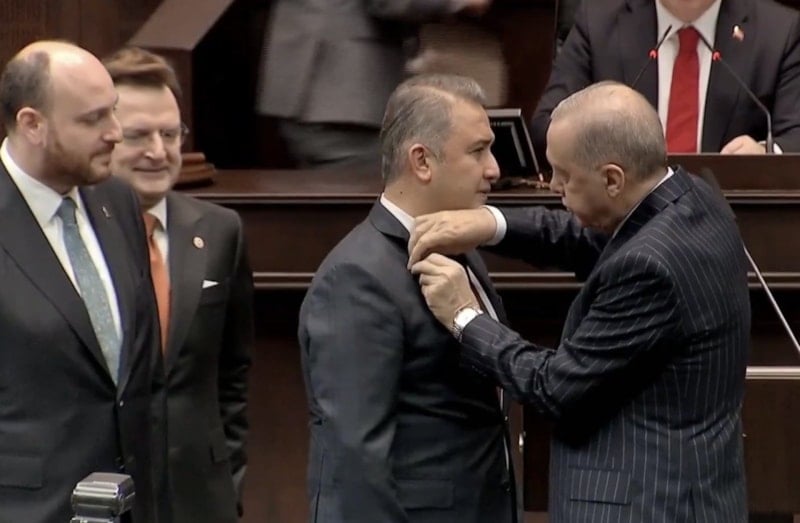 Cumhurbaşkanı Recep Tayyip Erdoğan, grup toplantısındaki konuşmasının ardından AK Parti'ye katılan üç vekilin rozetlerini taktı.