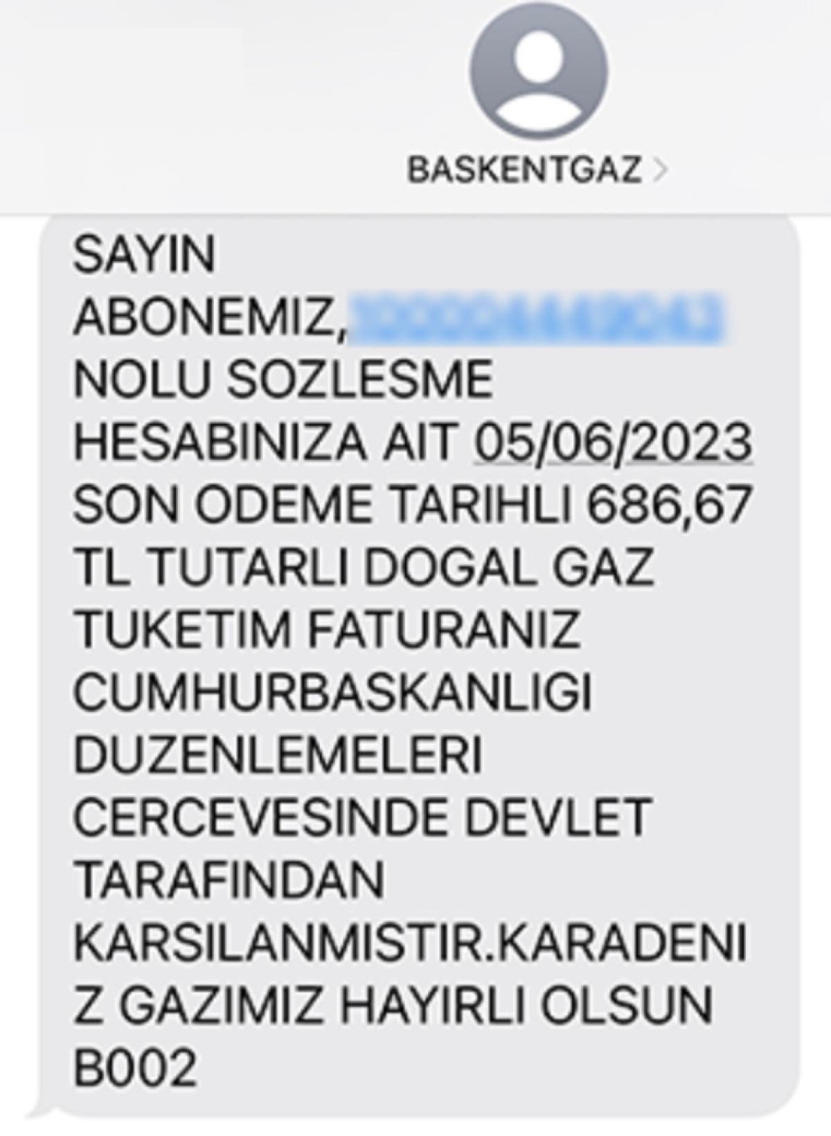 Sayın abonemiz doğalgaz tüketim faturanız Cumhurbaşkanlığı düzenlemeleri çerçevesinde devlet tarafından karşılanmıştır. Karadeniz gazımız hayırlı olsun.