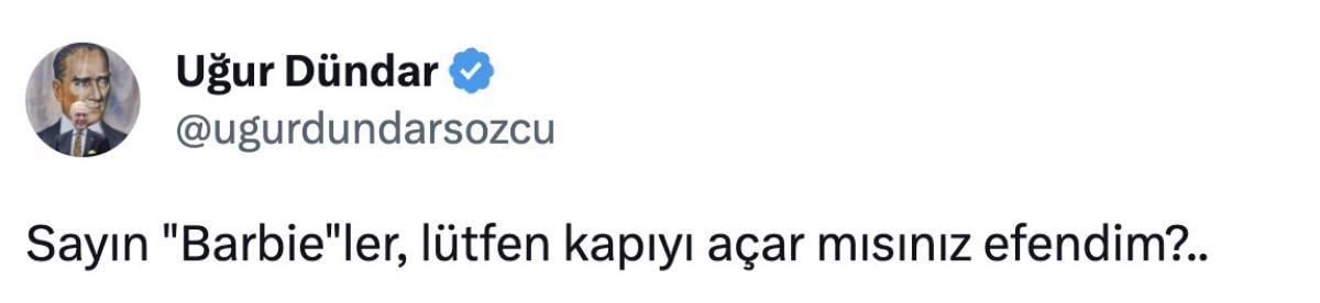 Dündar, o paylaşıma şu notu düştü; “Sayın "Barbie"ler, lütfen kapıyı açar mısınız efendim?”