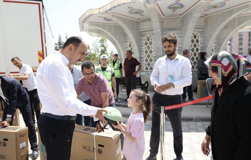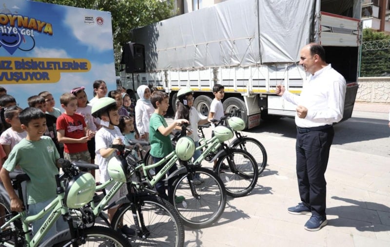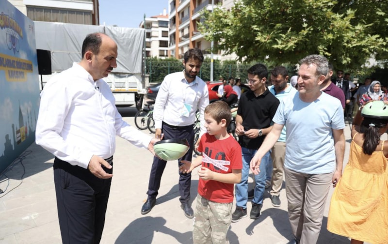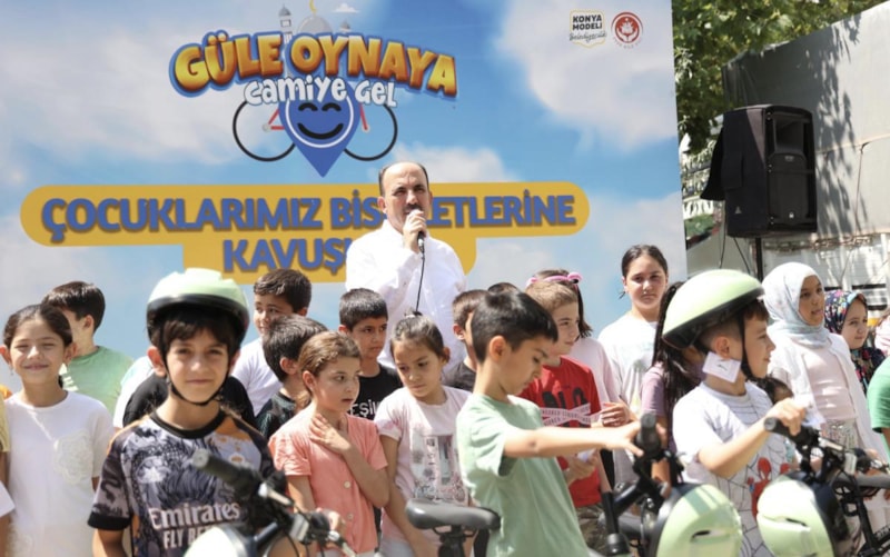 Konya Büyükşehir Belediye Başkanı Uğur İbrahim Altay, 'Güle Oynaya Camiye Gel' projesi kapsamında yaz tatilinde bisiklet almaya hak kazanan çocuklara bisikletlerini hediye etti.