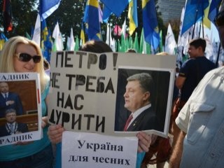 Devlet Başkanı Pyotr Poroşenko'nun önerdiği adem-i merkeziyetçilikle ilgili anayasal düzenlemelerin parlamentodaki ilk okumada onaylanması üzerine yüzlerce kişi Kiev'deki parlamento binası önünde toplandı.