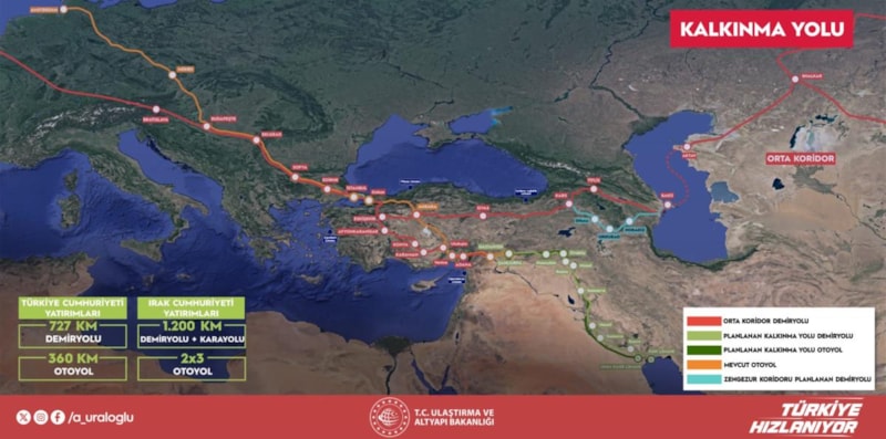 Ulaştırma Bakanı Abdulkadir Uraloğlu, ‘Yeni İpek Yolu’ diye de nitelenen Kalkınma Yolu Projesi’yle ilgili, “ Lojistikte bölgesel üs hâline gelmeyi hedefliyoruz. Projenin yapım süreci inşaat sektörüne ciddi katkı verecek. Paydaş ülkeler arasında yeni kapılar açılacak, gelişmelerine destek verecek” dedi.