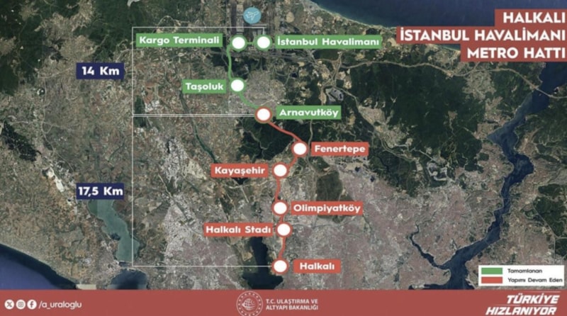 14 kilometrelik yeni metro hattı, Arnavutköy’den İstanbul Havalimanı Hattı ile birlikte bu hattın devamı olan Halkalı-Kayaşehir-İstanbul Havalimanı Kesimi’nin tünelleri ile birlikte tamamlandı.