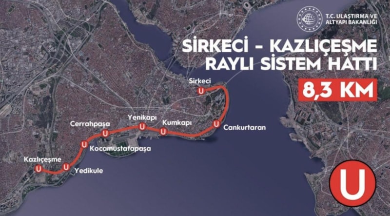 Sirkeci, Cankurtaran, Kumkapı, Yenikapı, Cerrahpaşa, Kocamustafapaşa, Yedikule, Kazlıçeşme duraklarından oluşan tek yönlü hattın sefer süresi 20 dakika oldu.