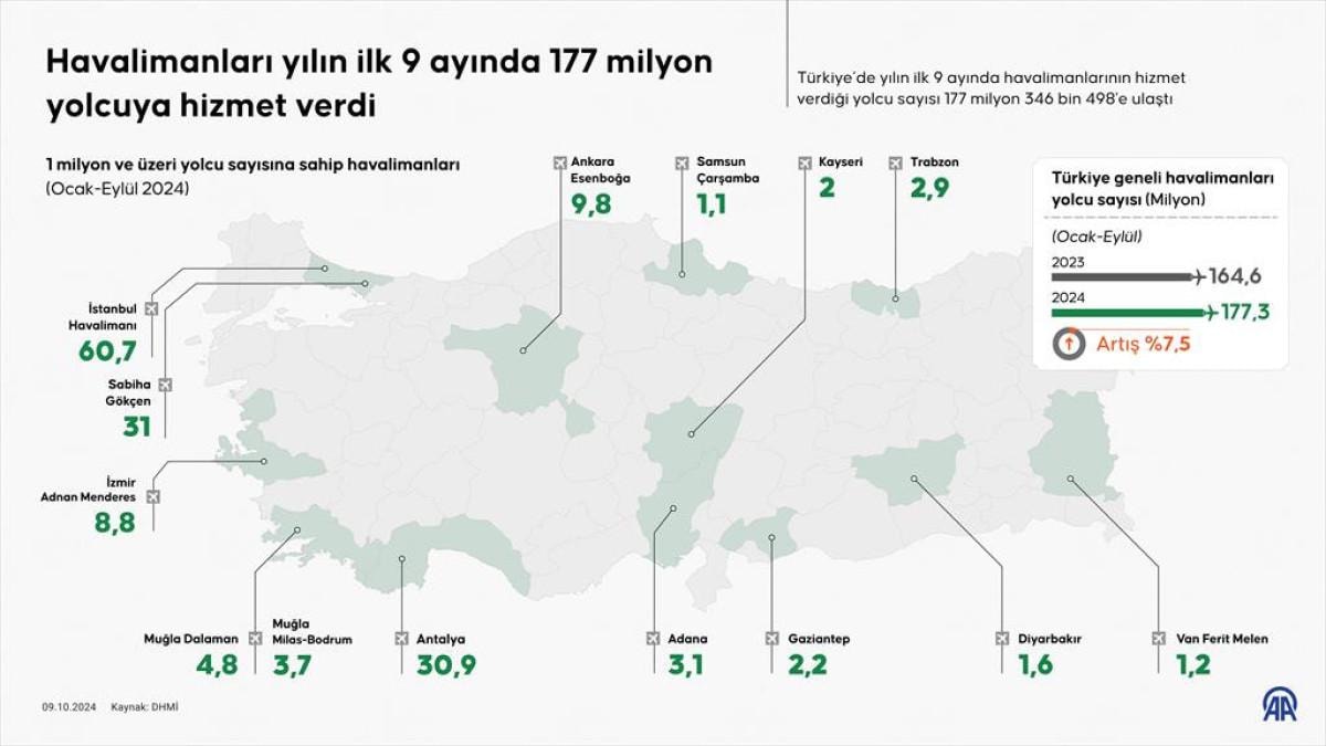 İLK 9 AYDA TAŞINAN YOLCU SAYISI 177 MİLYONU GEÇTİ